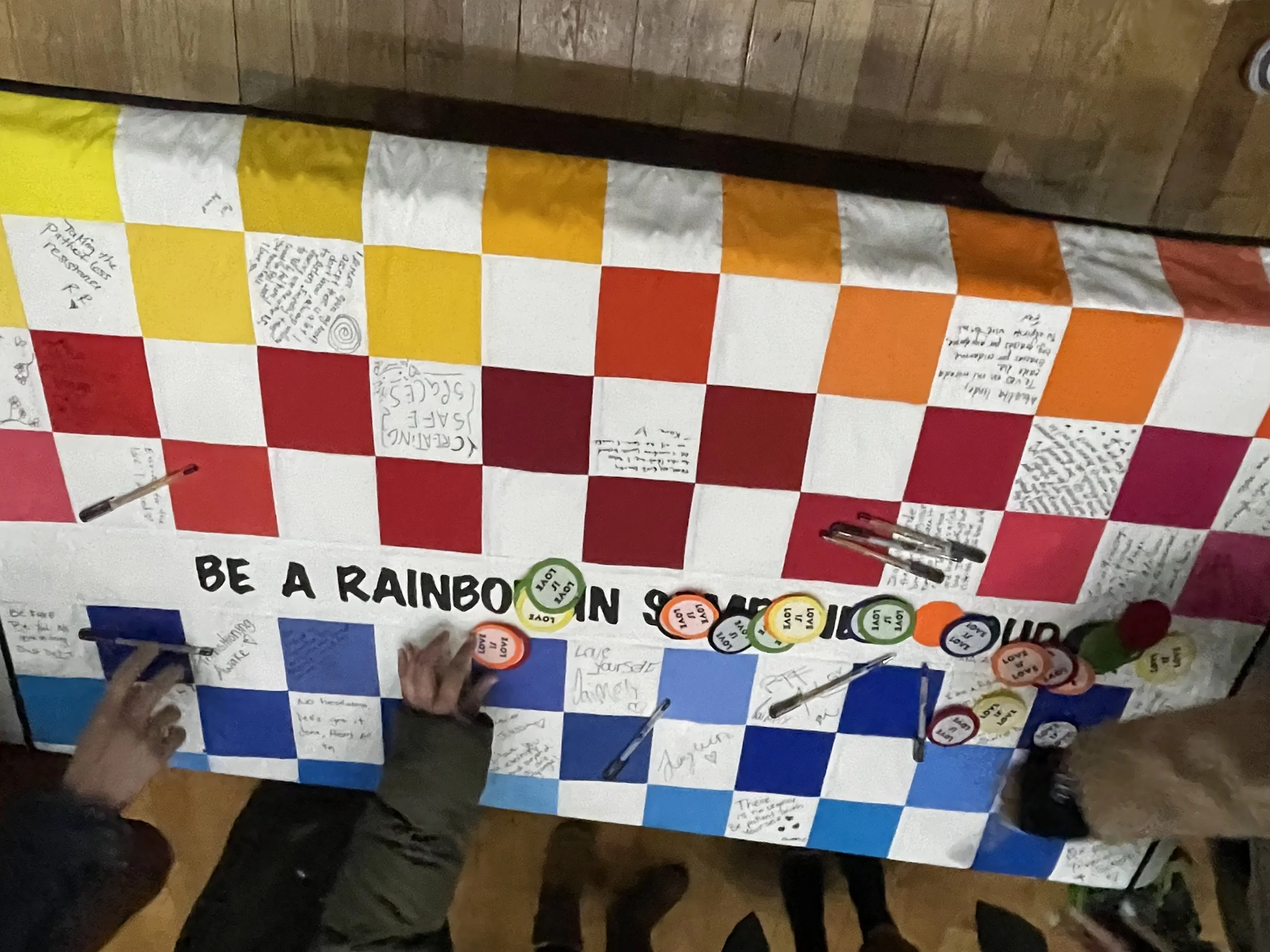 “Rainbow” a quilt created by Sylvia Hernandez used as part of a convening event during an Encuentros. “Dreaming of an Inclusive World” was produced by Jorge and co-curated with Efrén Olson-Sanchez