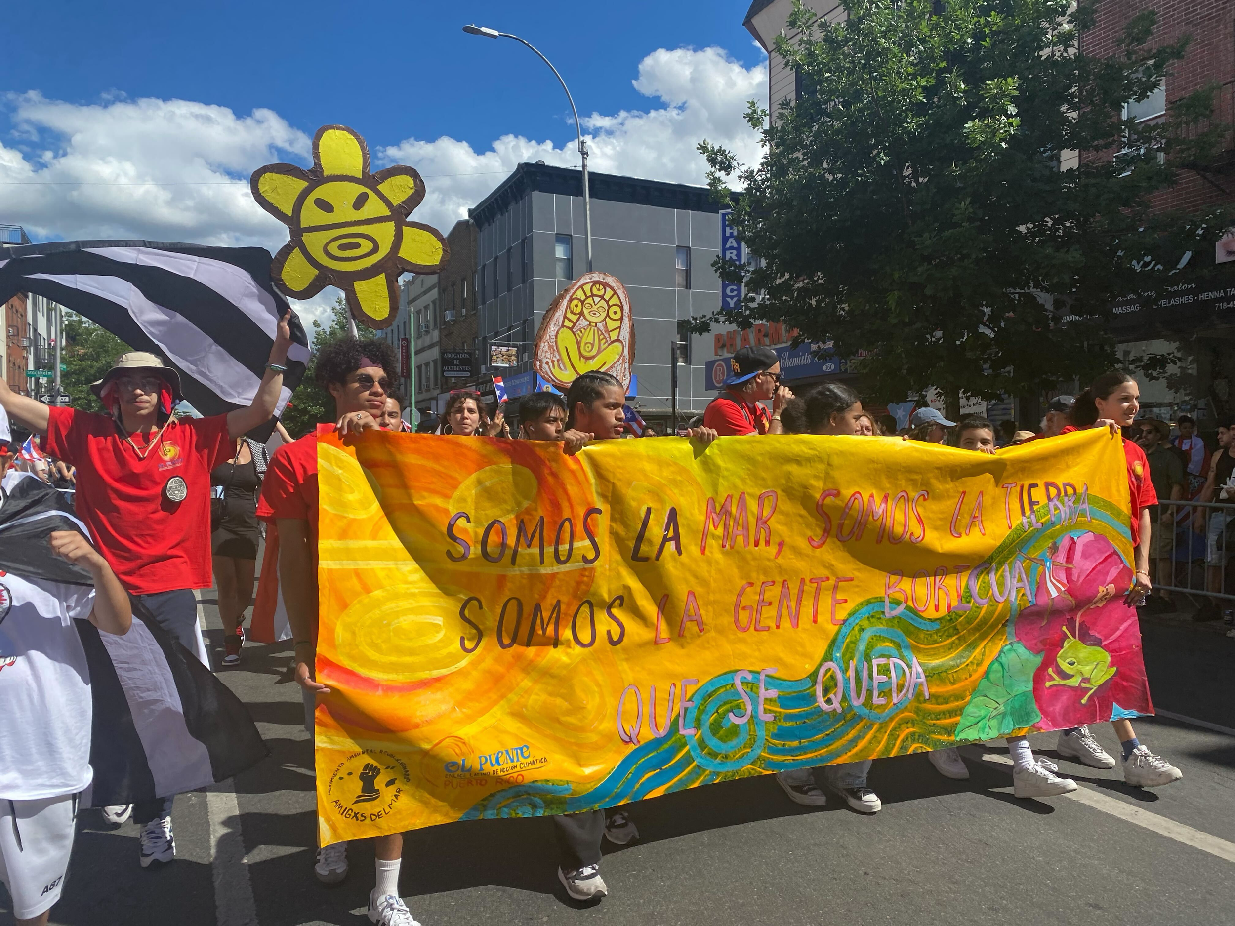 El Puente collective marching during the Puerto Rican parade in Knickerbocker. Jorge directed and organized the chants for the group.