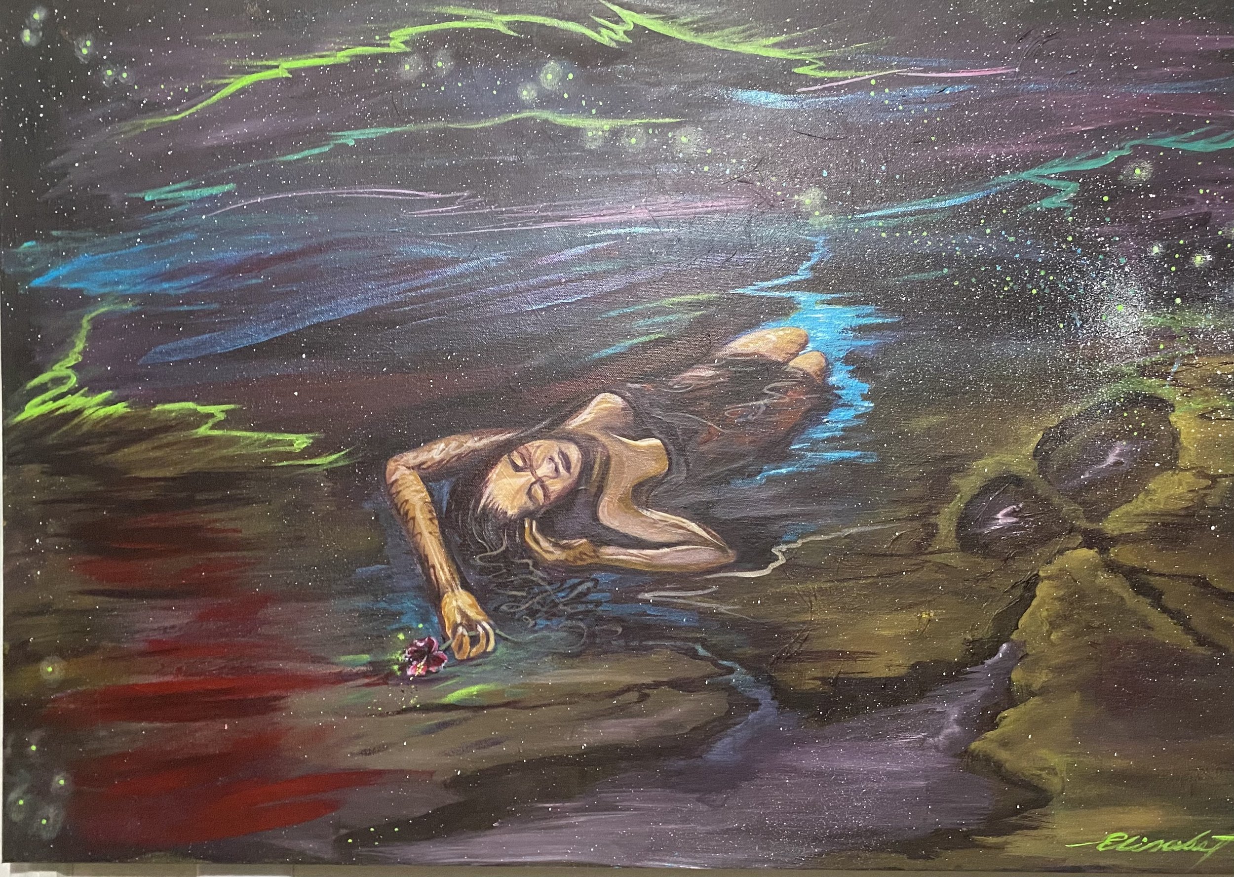 "A Lo Lejos" acrylic on canvas by Elisabet Díaz Cintrón, inspired in the poem by the same title.