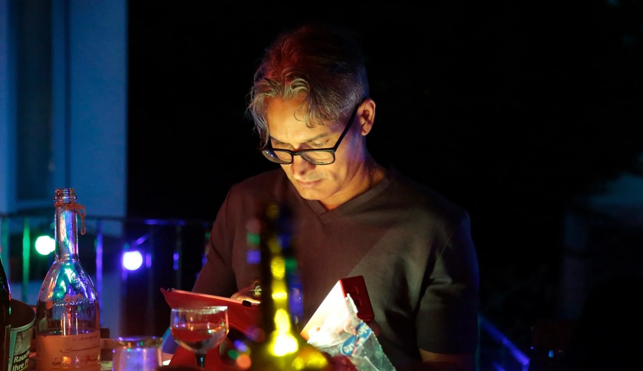 Picture during the recording of a video montage for the poems: "Sato", "Union Square" and "Patria"