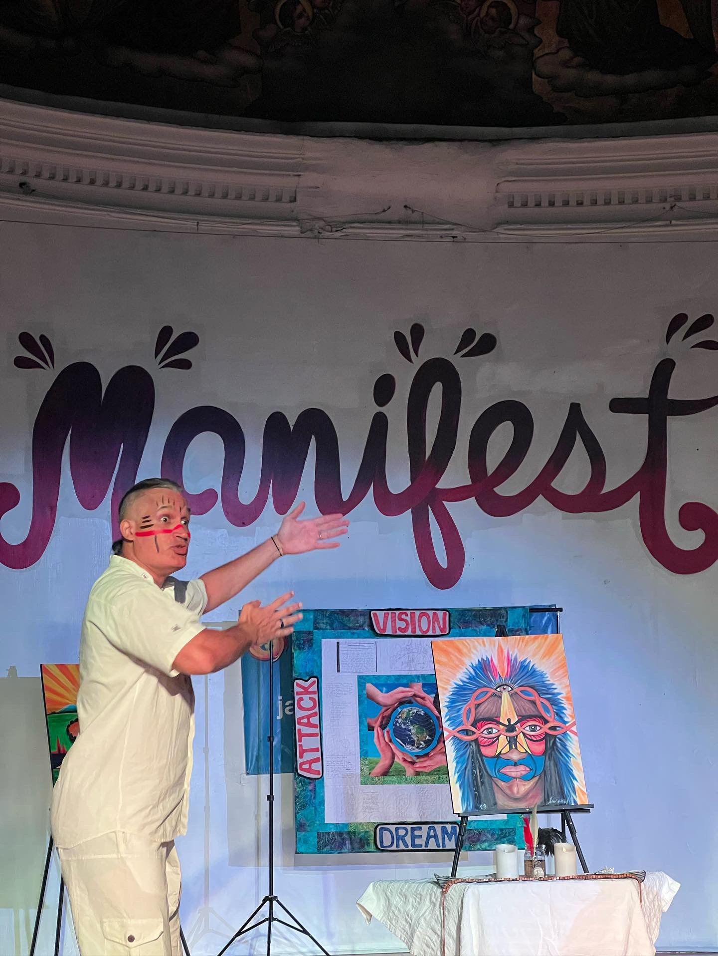 Jorge during the performance of "Circle, Lines, Legacy" at "Indigenous Legacy" an event that was part of the "Decolonizing the Conscience" series of "Encuentros
